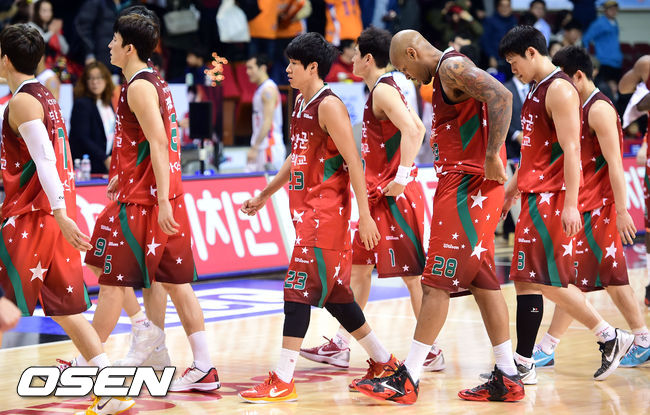 경기종료후 KGC 선수들이 아쉬워하고 있다/ soul1014@osen.co.kr