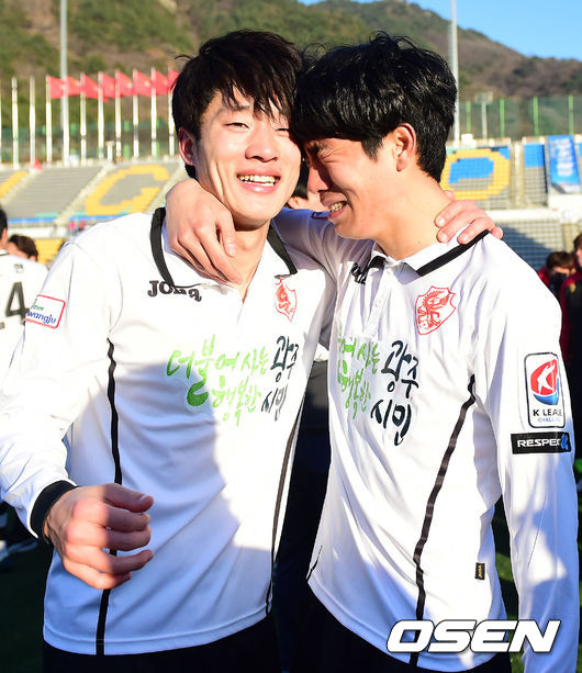 K리그 클래식으로 승격한 광주 김호남과 여름이 기뻐하고 있다. / youngrae@osen.co.kr