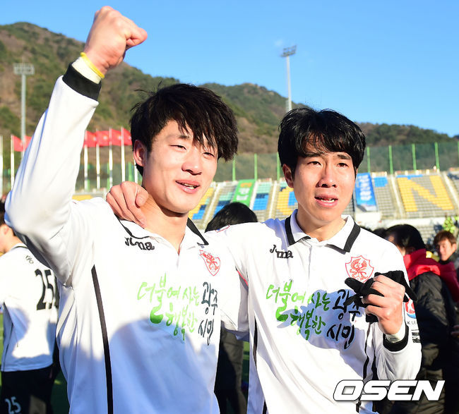 K리그 클래식으로 승격한 광주 김호남과 여름이 기뻐하고 있다. / youngrae@osen.co.kr