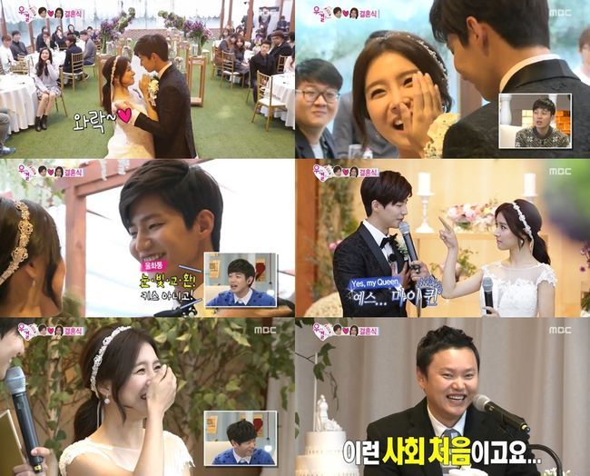 그는 이날 가상부부 김소은과 결혼식을 올렸으며 "신랑신부 시선 교환 3초"라는 말에 김소은의 얼굴을 덥석 잡고 자신에게 당겨 김소은을 당황케 했다.