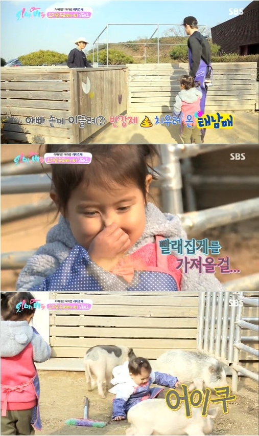 6일 오후 방송된 SBS 예능프로그램 '오!마이 베이비'에서 태오와 태린 남매는 아빠 리키김과 돼지 농장을 찾았다.