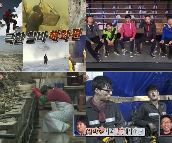 극한 알바 두번째 편으로 꾸며진 이날 방송은 탄광으로 간 유재석-차승원, 굴까기에 도전한 정형돈, 택배 나르기에 나선 하하, 홈쇼핑 전화상담원으로 변신한 정준하의 모습을 그려냈다.