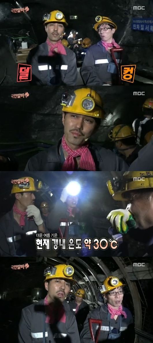 차승원과 유재석이 석탄 캐기 초반부터 기진맥진했다.