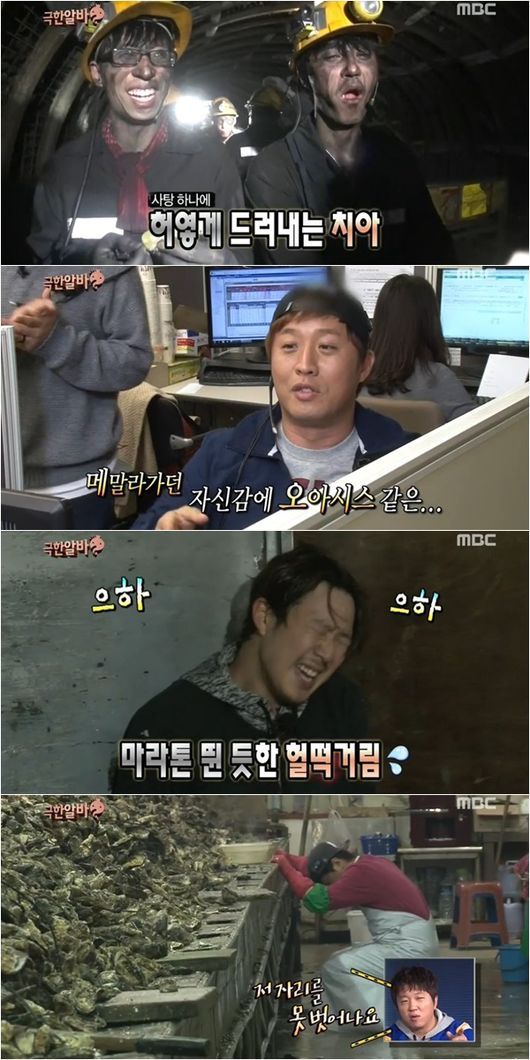 온 몸에 석탄을 묻힌 채 탄광 안에서 식사를 하는 모습, 무거운 걸 들고 왔다갔다 해야 하는 모습은 전혀 웃기지 않아도 눈을 뗄 수 없었다.