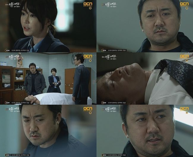이날 방송에서 박웅철(마동석 분)은 시신이 돼 누워있는 이두광을 발견했다. 그리고 범인으로 지목된 사람은 이정문. 박웅철은 이정문을 향한 복수심을 불태웠다.
