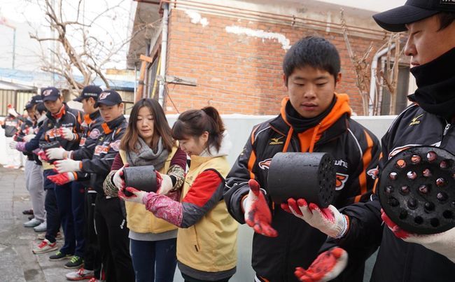 ‘사랑의 연탄배달’은 한화 선수단 주관으로 진행됐다. 한화 선수단은 홈경기 시구를 통해 적립한 성금과 선수단과 구단 후원금으로 1000만 원 상당의 연탄 및 난방연료를 마련했다. 잘풀리는집(미래생활㈜), 사랑의 열매, 팔도라면, 스켈리도 등이 이번 행사에 함께 했다.