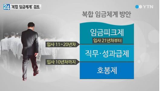 복합 임금체계란 호봉제와 성과급제, 임금피크제를 나이에 따라 달리 적용하는 방식을 일컫는다.