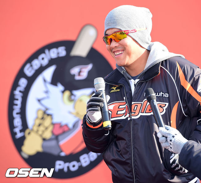 7일 오후 대전구장에서 진행된 한화 이글스 '2014 독수리 한마당'에서 한화 정근우가 팬들에게 인사를 하고 있다.