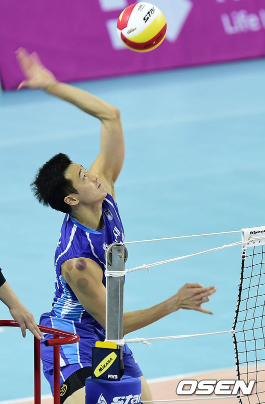 7일 오후 인천 계양체육관에서 열린 '2014-2015 NH농협 V-리그' 대한항공과 삼성화재의 경기, 1세트 삼성화재 황동일이 스파이크를 시도하고 있다.