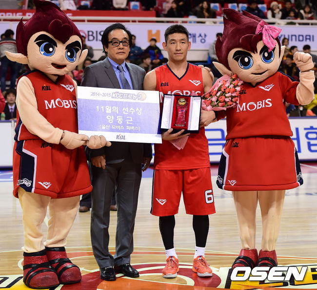 경기에 앞서 11월의 선수상에 선정된 양동근이 포토타임을 갖고 있다.