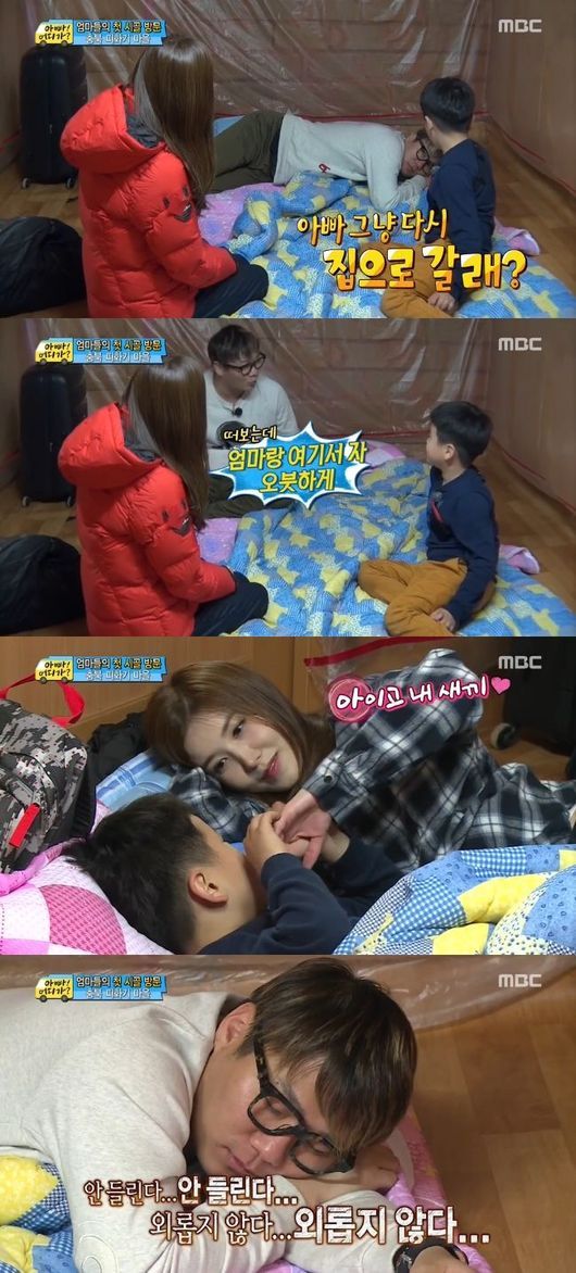 이에 윤민수는 "엄마랑 여기서 자 오붓하게"라고 말했고 윤후는 조금의 망설임도 없이 "그래"라고 말해 아빠를 당황하게 했다.