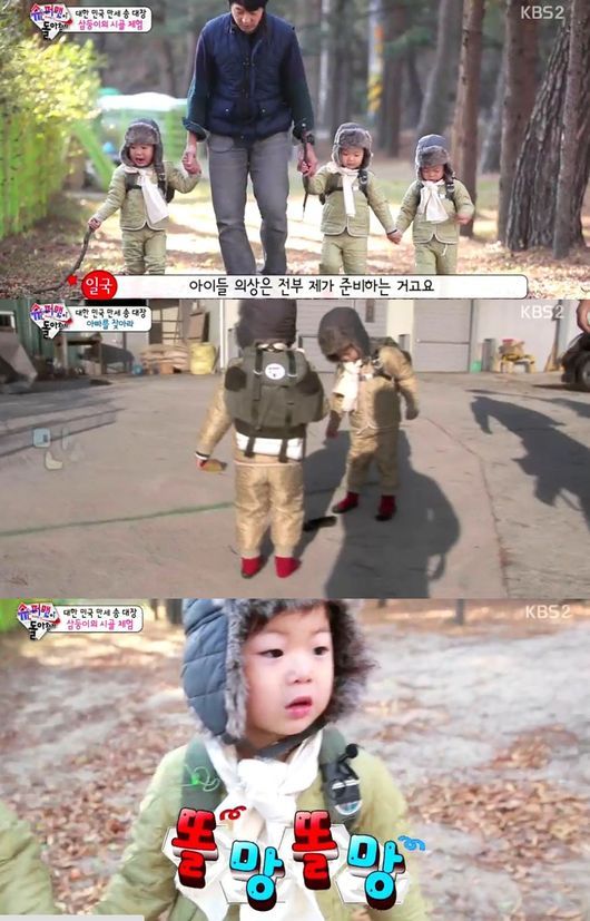 7일 방송된 KBS 2TV 예능프로그램 '해피선데이-슈퍼맨이 돌아왔다'에서는 '함께 걸어 좋은 길'이란 제목으로 송일국이 삼둥이와 함께 시골 체험에 나온 모습이 그려졌다.