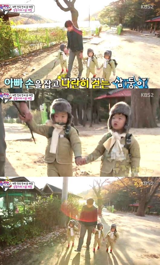 7일 방송된 KBS '슈퍼맨이 돌아왔다'에서는 시골을 방문한 삼둥이의 모습이 그려졌다. 이날 송일국은 "아이들에게 전원을 체험시켜주고 싶어 시골 나들이를 결정했다"고 밝혔다.