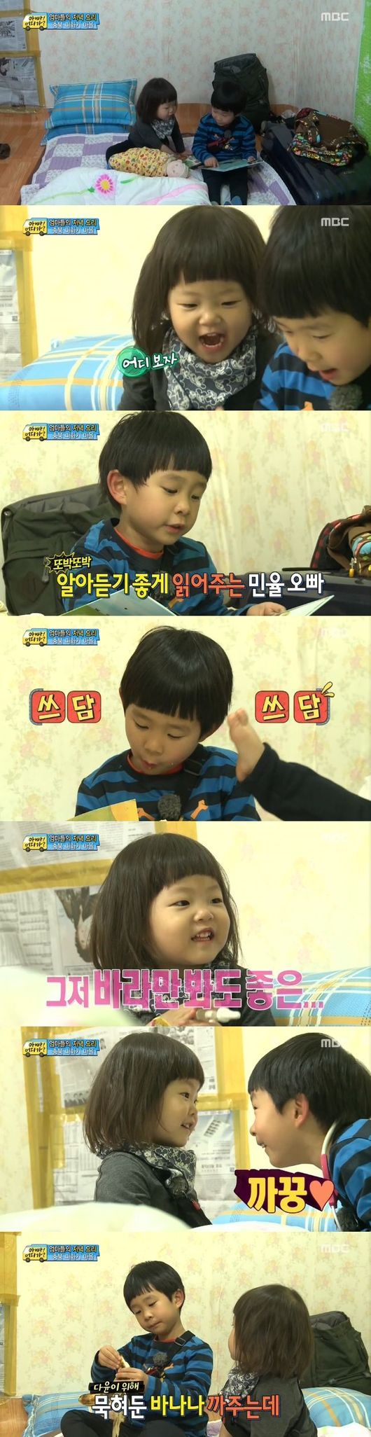 7일 오후 방송된 MBC 예능프로그램 '일밤-아빠!어디가?'(이하 '아빠어디가')에서는 어린 다윤이와 놀아주는 민율이의 모습이 그려졌다.