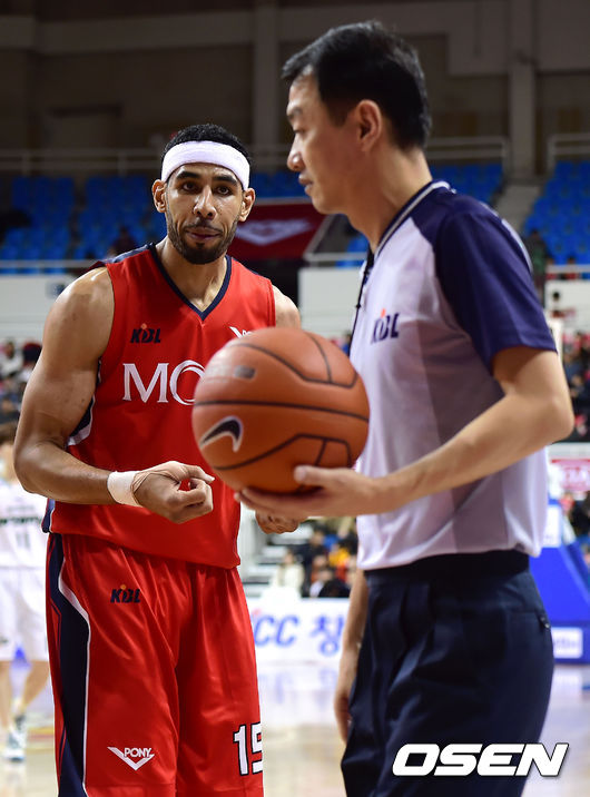 4쿼터 모비스 문태영이 주심의 테크니컬 파울 판정에 어필하고 있다.