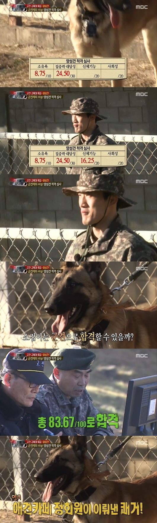 김동현이 담당했던 군견 소검이는 7일 오후 방송된 MBC 예능프로그램 '일밤-진짜사나이'(이하 '진짜사나이')에서 100점 만점에 83.67점으로 합격을 했다.