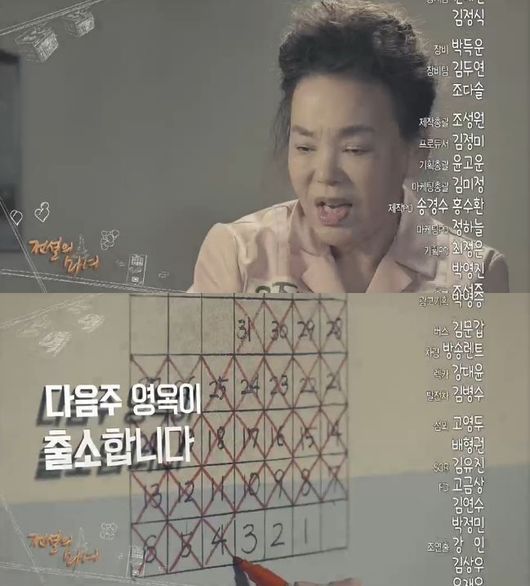 7일 오후 방송된 MBC 주말드라마 '전설의 마녀'(극본 구현숙 연출 주성우) 말미에는 10번 방에 홀로 남게 됐던 영옥(김수미 분)의 모습이 다시 등장했다.