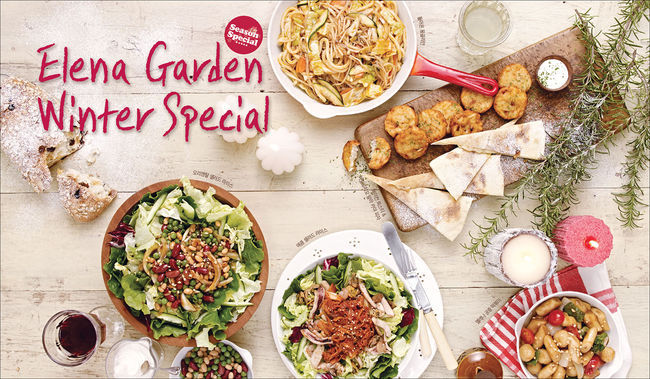 엘레나가든의 샐러드 바에도 6종의 메뉴를 새롭게 추가한다. '윈터 스페셜'을 컨셉으로 디저트처럼 즐길 수 있는 피자인 '바틸로치오 알라 카야', 으깬 감자와 베이컨을 둥글게 튀겨 고소한 맛이 일품인 '베이컨 뢰스티', 쫄깃한 떡을 간장소스로 맛을 내고 브로콜리, 토마토 등으로 상큼함을 더한 '엘레나 궁중 떡볶이'를 마련했다.