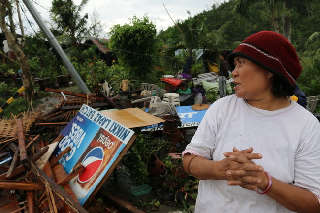 작년 11월 슈퍼태풍 하이옌 생존자인 파티마 루자(54세)씨는 “이제 막 집을 완성하던 참이었다. 운영하던 노점도 완전히 망가졌다”며 “작년과 마찬가지로 올해도 태풍의 피해를 수습하며 크리스마스를 맞이할 것 같다. 그래도 다행히 생명을 보존한 것은 감사한 일이라고 생각한다”고 말을 이었다.