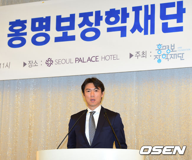 8일 오전 서울 반포동 서울팔래스 호텔에서 열린 '제13회 홍명보장학재단 장학금 수여식'에서 홍명보 이사장이 인사말을 하고 있다.