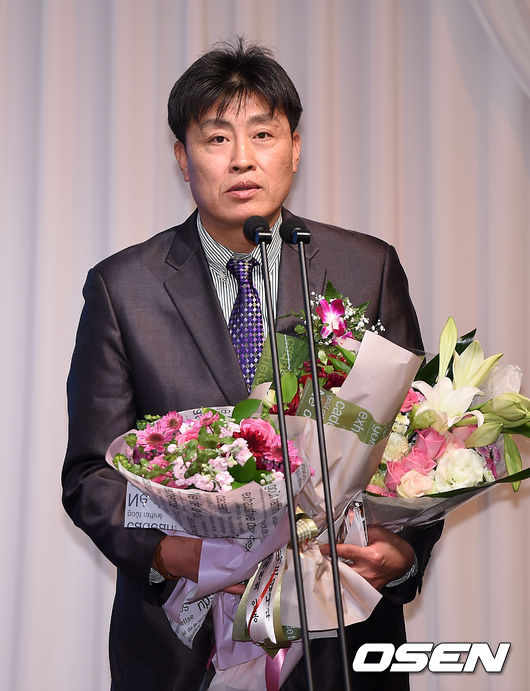 심판상을 수상한 박기택 한국야구위원회 심판위원이 소감을 말하고 있다.