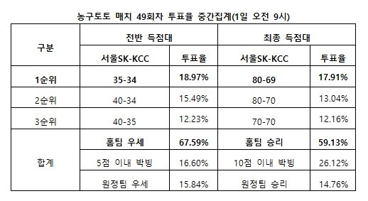 2014-15시즌 KBL 서울SK-KCC전 대상 농구토토 매치 49회차 투표율 중간집계