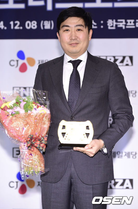 8일 오후 서울 중구 태평로 한국프레스센터 매화홀에서 열린 '제9회 한국모터스포츠 어워즈 2014' 행사에서 올해의 드라이버대상을 수상한 조항우가 포토타임을 갖고 있다.
