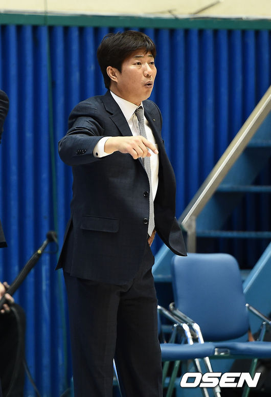 2쿼터 KDB생명 안세환 감독이 작전을 지시하고 있다.