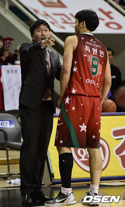 8일 오후 경기도 안양실내체육관에서 열린 '2014-2015 KCC 프로농구' 안양 KGC 와 창원 LG의 경기, 2쿼터 안양 이동남 감독대행이 작전을 지시하고 있다.