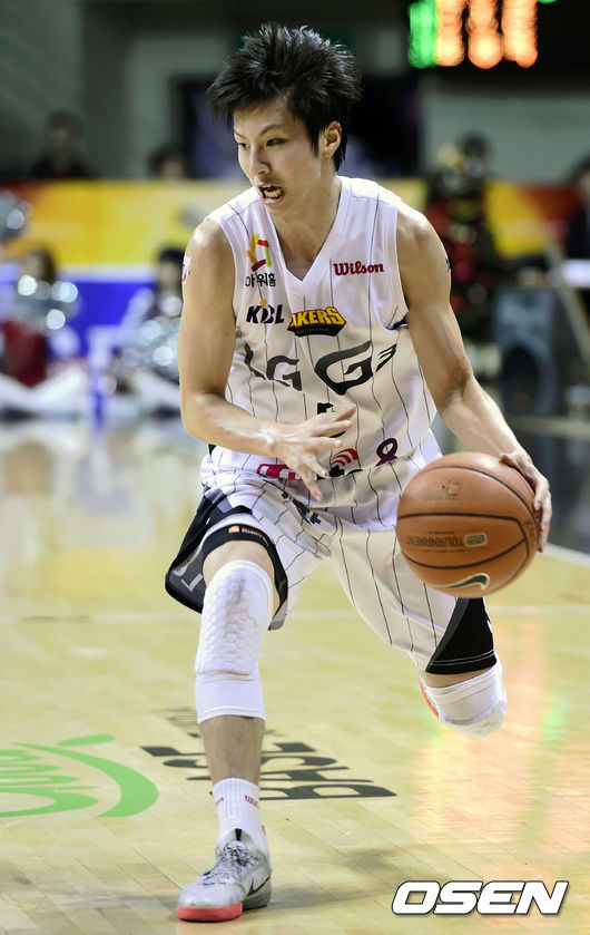 8일 오후 경기도 안양실내체육관에서 열린 '2014-2015 KCC 프로농구' 안양 KGC 와 창원 LG의 경기, 3쿼터 창원 김시래가 드리블 하고 있다.