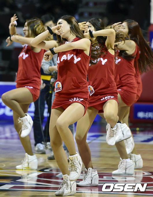 8일 오후 경기도 안양실내체육관에서 열린 '2014-2015 KCC 프로농구' 안양 KGC 와 창원 LG의 경기, 4쿼터 치어리더들이 멋진 공연을 펼치고 있다.