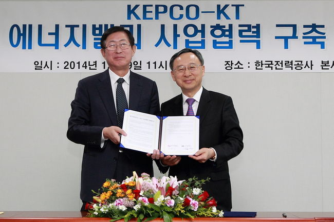 KT(회장 황창규, www.kt.com)와 한국전력(사장 조환익)은 9일 전남 나주시 한국전력 신사옥에서 양사 CEO가 참석한 가운데 4대 에너지 통신 융복합 신사업선정과 구체화 방안에 대해 논의하고, 사업 활성화와 스마트 에너지 생태계 조성에 상호 협력하기로 했다고 밝혔다.