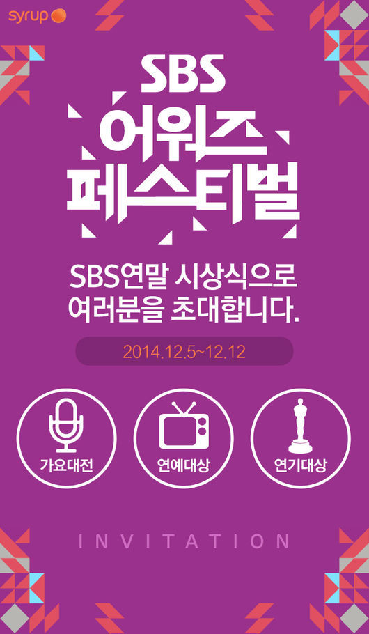 시럽(Syrup)이 SBS 연말 시상식 티켓을 증정하는 이벤트를 벌인다.