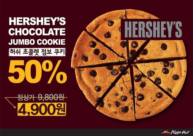 허쉬 초콜릿 점보 쿠키는 미국 피자헛에서 올해 상반기 처음 선보인 제품. 국내에서도 크리스마스 시즌을 맞아 피자와 함께 즐길 수 있는 달콤한 디저트 메뉴로 출시됐다.
