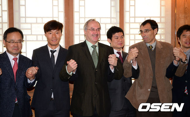 9일 오전 서울 강서구 메이필드호텔에서 마련된 한국 A대표팀 슈틸리케 감독과 K리그 클래식 감독들과의 오찬에서 포토타임을 갖고 있다.