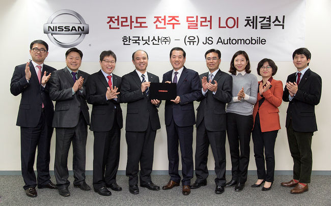 한국닛산은 판매 신장 및 서비스 강화의 일환으로 전라북도 전주 및 강원도 원주 지역 판매를 담당할 딜러사 2곳을 선정, 공식 딜러의향서(LOI, Letter of Intent)를 체결했다. 2곳의 딜러사는 2014 회계연도 안에 닛산의 전시장 및 서비스 센터를 오픈할 계획이다.