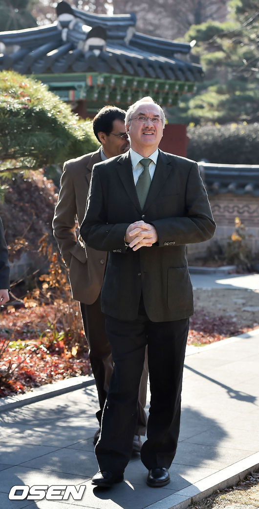 9일 오전 서울 강서구 메이필드호텔에서 마련된 한국 A대표팀 슈틸리케 감독과 K리그 클래식 감독들과의 오찬을 위해 슈틸리케 감독이 오찬장으로 이동하고 있다.