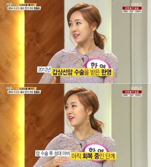 가수 한영이 갑상선 암 수술을 받았던 경험을 고백했다.