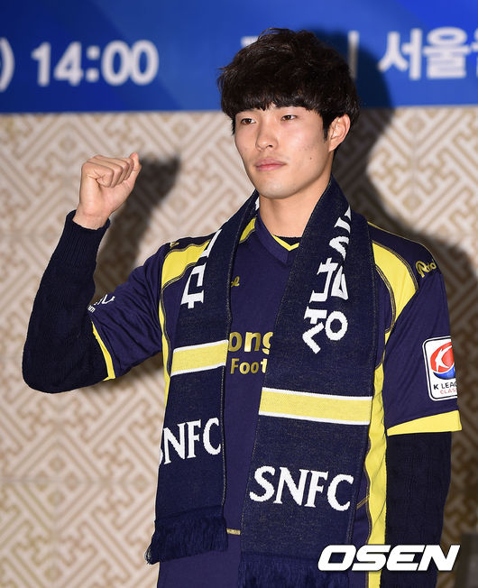 성남 자유선발 선수 성봉재가 포토타임을 갖고 있다.