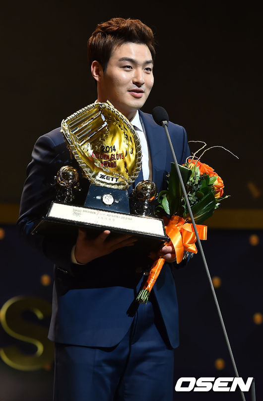 박병호는 9일 삼성동 코엑스 오디토리움에서 열린 '2014 한국야쿠르트 세븐 프로야구' 골든글러브 시상식에서 1루수 부문 골든글러브를 수상했다. 지난 2012년 처음으로 골든글러브를 받은 박병호는 이후 한 번도 1루수 부문을 놓치지 않고 3년 연속 수상을 이어갔다. 박병호는 유효표 321표 중 279표(86.9%)를 받았다.