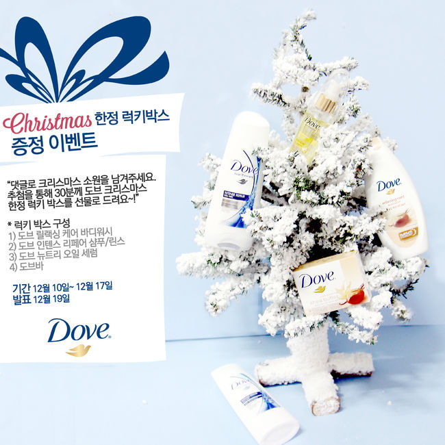 유니레버코리아 도브가 한해 동안 도브를 사랑해주신 소비자들에게 감사한 마음을 담아 크리스마스 한정 럭키 박스 증정 이벤트를 진행한다고 9일 밝혔다.