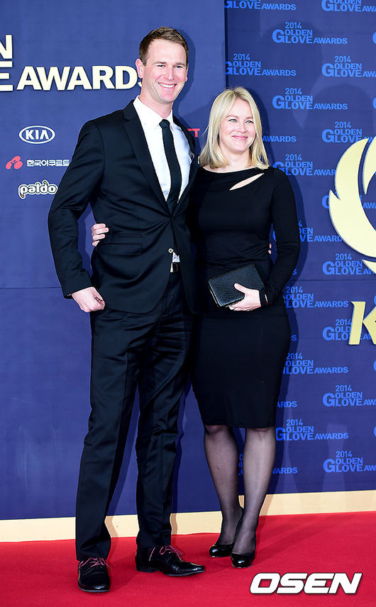 밴헤켄이 아내와 함께 포즈를 취하고 있다.