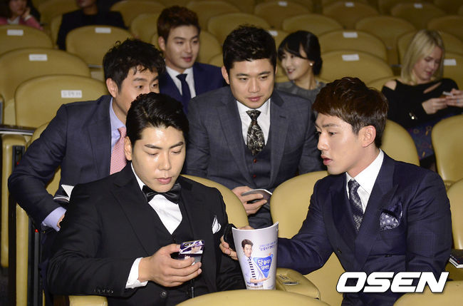 시상식전 넥센 박병호,유한준,손승락,강정호,서건창이 이야기를 나누고 있다.