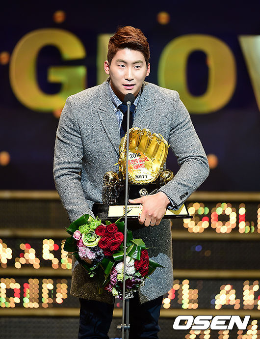 나성범은 9일 서울 삼성동 코엑스 오디토리움에서 열린 ‘2014 한국야쿠르트 세븐 프로야구 골든글러브 시상식’ 외야수 부문에서 치열한 경쟁을 뚫고 생애 첫 골든글러브를 수상했다.