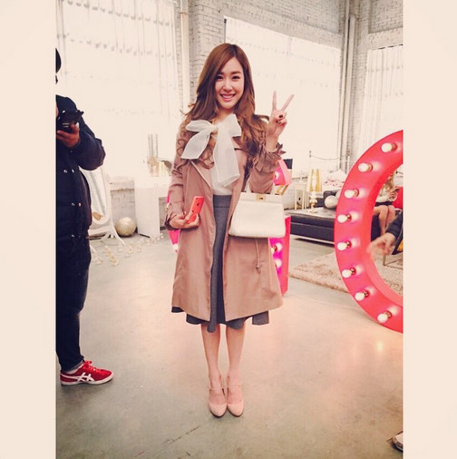 공개된 사진 속 티파니는 들뜬 듯 손가락 브이를 그리며 카메라를 향해 활짝 웃고 있는 모습이다. 특히 그는 커다란 리본 장식의 블라우스와 무릎길이의 스커트, 트렌치코트로 공주님 같은 패션을 완성해 눈길을 끈다.