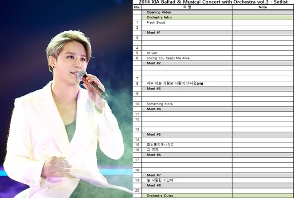 그룹 JYJ 멤버 김준수가 연말콘서트 셋리스트를 깜짝 공개했다.