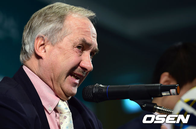 슈틸리케 감독이 조인식이 끝난후 기자회견을 갖고 있다.