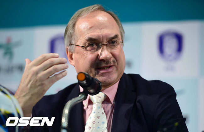 슈틸리케 감독이 조인식이 끝난후 기자회견을 갖고 있다.