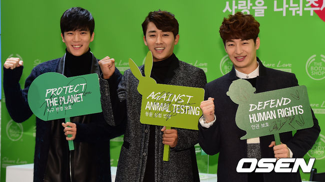 가수 손호영, 배우 하석진, 손호준이 10일 오전 더 바디샵 코엑스몰점에서 열린 '쉐어 러브, 쉐어 더 바디샵' 캠페인 행사에 참석했다.
