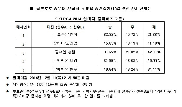 KLPGA 2014 현대차 중국여자오픈 1라운드 대상 승무패39회차 중간집계